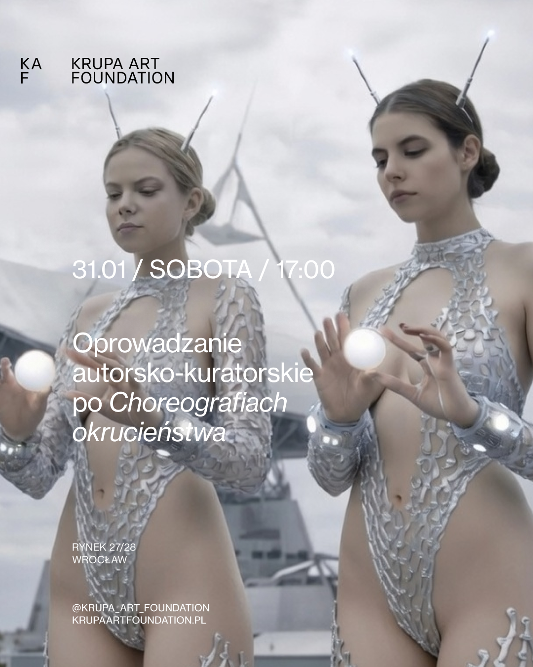 Zapraszamy na spotkanie z artystkami (Chloé Arrouy i Kobietami Antenami, czyli Agatą Lankamer i Agatą Konarską) oraz Natalią Barczyńską, kuratorką wystawy, podczas którego opowie o koncepcji i procesie powstawania ekspozycji. W piwnicznych przestrzeniach KAF zobaczymy prace francuskiej artystki Chloé Arrouy, duetu Kobiety Anteny (Agata Lankamer i Agata Konarska) oraz historyczne obiekty Tadeusza Kantora. Oprowadzanie pozwoli poznać, jak różne media i perspektywy łączą się w narracji o ciele, przemocy, pamięci i performansie – zarówno w wymiarze materialnym, jak i cyfrowym.