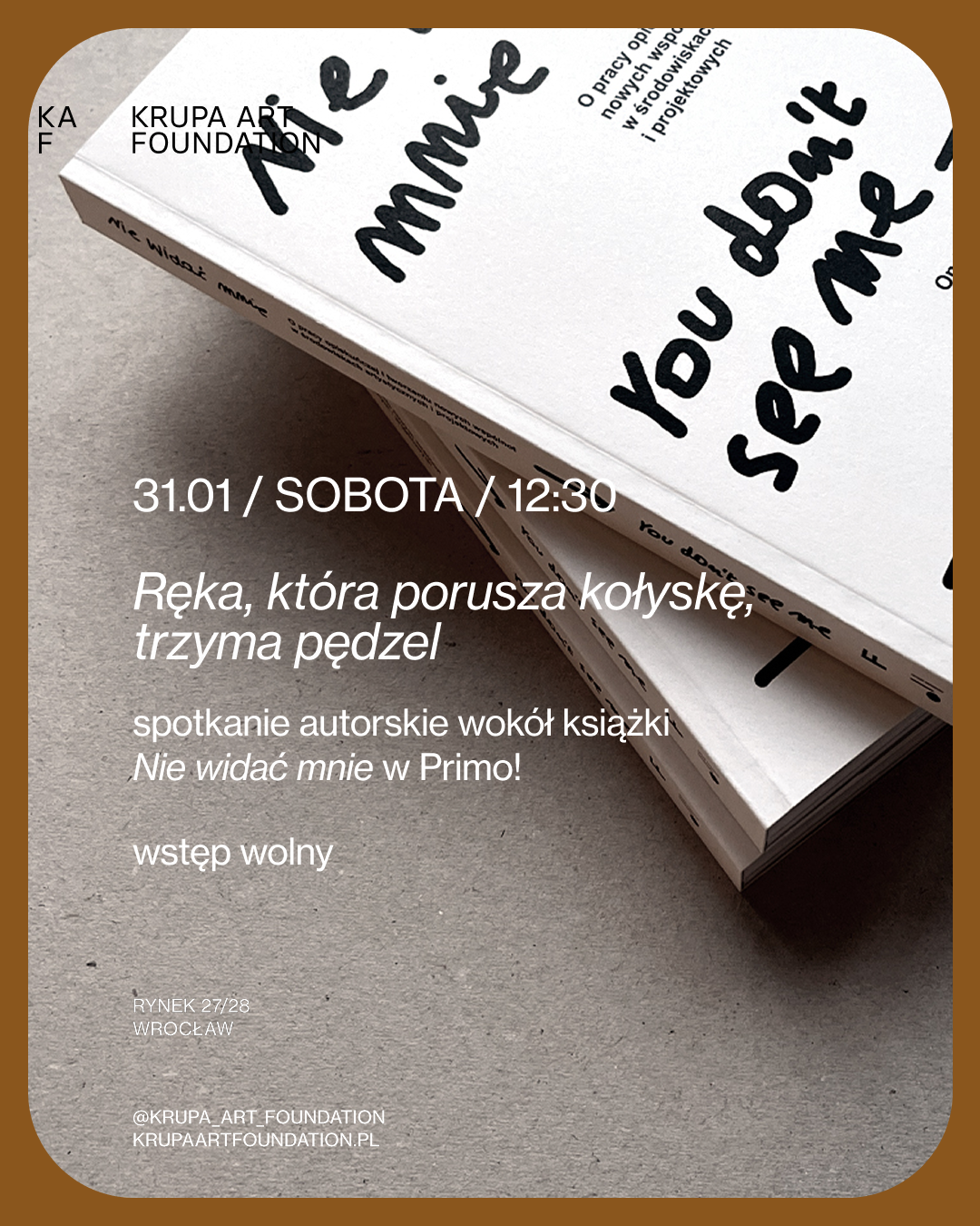 Zapraszamy na spotkanie wokół publikacji Nie widać mnie. O pracy opiekuńczej i tworzeniu nowych wspólnot w środowiskach artystycznych i projektowych, pod redakcją Ani Witkowskiej. Książka przygląda się niewidzialnej pracy opiekuńczej w polu sztuki i designu oraz temu, jak troska, zmęczenie i relacje wpływają na praktyki twórcze i kolektywne.